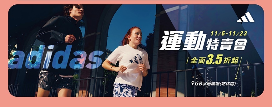 11/5-11/23於GBF水池廣場ADIDAS特賣。(詳 EDM)